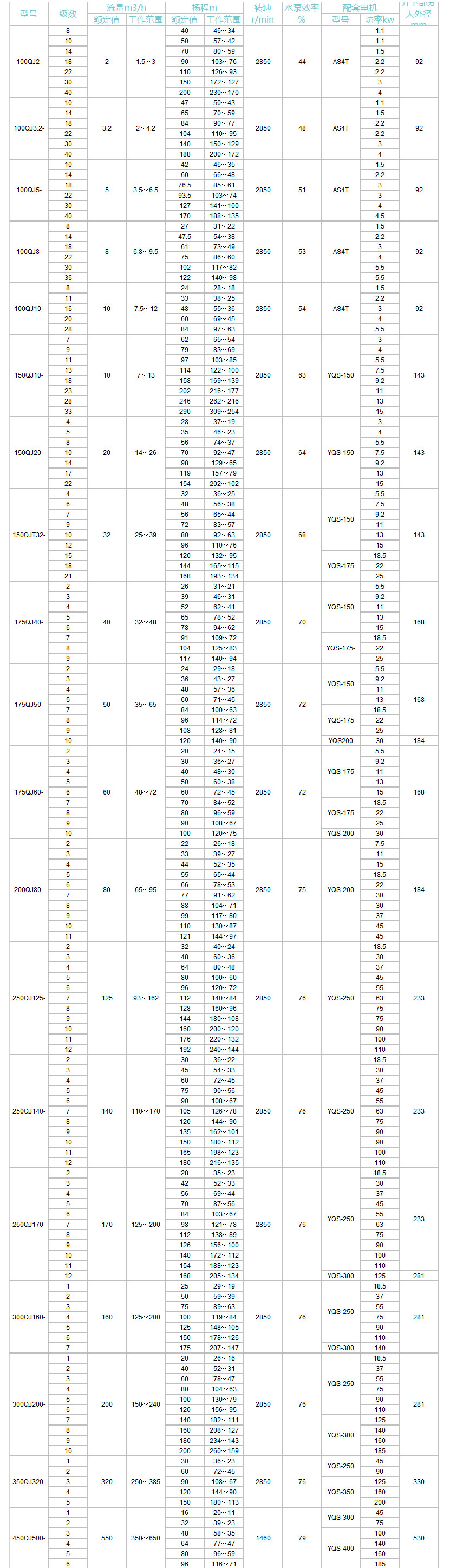 QJ型井用潛水泵型號參數(shù):
