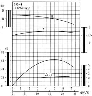 D型臥式多級離心泵性能曲線圖: